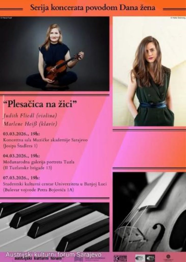 Organizator serije koncerata u Sarajevu, Tuzli i Banja Luci, je Austrijski kulturni forum iz Sarajeva. Publika u ovim gradovima će imati priliku da uživa u programu vrhunskih umjetnica, koje stižu u BiH povodom Međunarodnog dana žena: Judith Fliedl (violina) i Marlene Heiß (klavir).